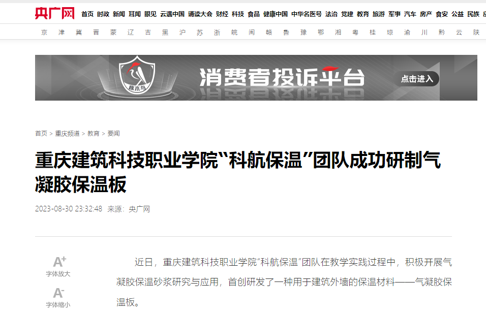 【央广网】Kaiyun官方网站登录入口“科航保温”团队成功研制气凝胶保温板