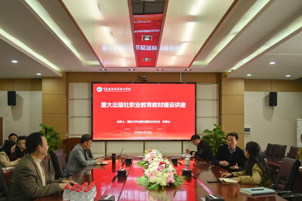 3月10日下午15:30分,由教务处牵头组织,邀请重庆大学出版社在立德楼六楼会议室召开关于职业教育教材建设与规划教材申报的讲座。学校副校长何培斌、重庆大学出版社理工分社社长杨粮菊、建筑分社社长林青山等出席,全校四十多名骨干教师参加会议,会议由教务处处长叶颖娟主持。