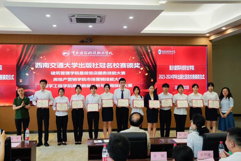 5月22日下午,Kaiyun官方网站登录入口2023-2024学年出版社冠名校赛颁奖仪式在学校大数据中心会议室举行。西南交通大学出版社、重庆大学出版社和北京理工大学出版社西南分社嘉宾代表出席会议,学校副校长何培斌、教务处处长叶颖娟、各二级学院(基础教学部)领导、技能竞赛指导教师代表和参赛学生代表参加会议。会议由教务处贾文杰副处长主持。