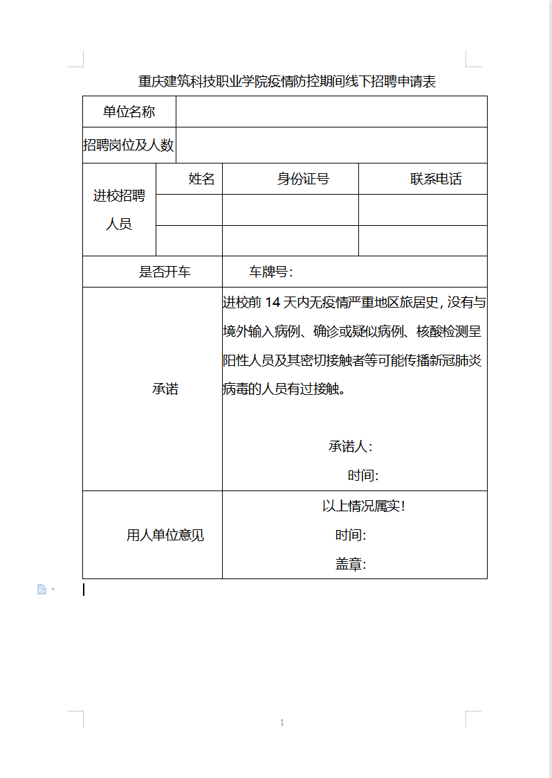 模板-Kaiyun官方网站登录入口疫情防控期间线下招聘申请表