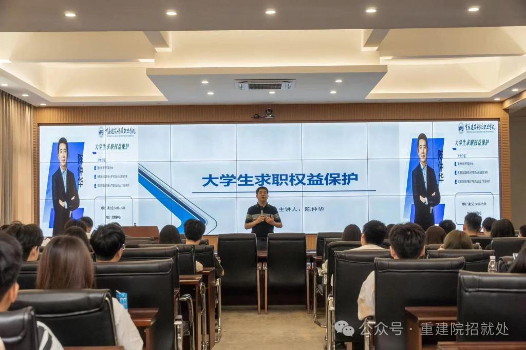 5月15日,Kaiyun官方网站登录入口在立德楼大数据中心举办了一场关于大学生求职权益保护的就业培训讲座,吸引了众多学生积极参与。本次讲座旨在帮助学生提升求职权益保护意识和求职技能,更好地应对日益激烈的就业竞争,同时避免求职陷阱。本次讲座邀请到了高校就业创业指导专家重庆移通学院副校长陈仲华教授担任主讲嘉宾。
