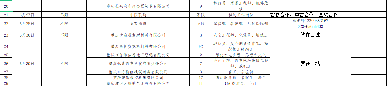 6月1日-6月30日招聘单位汇总