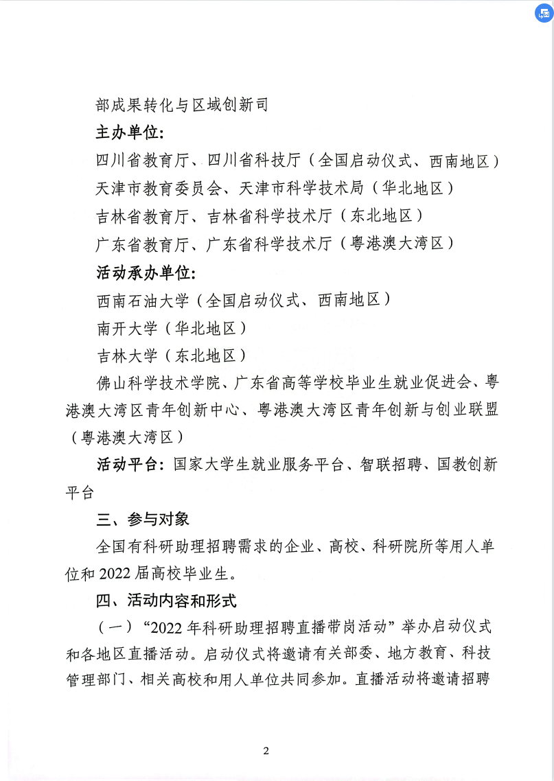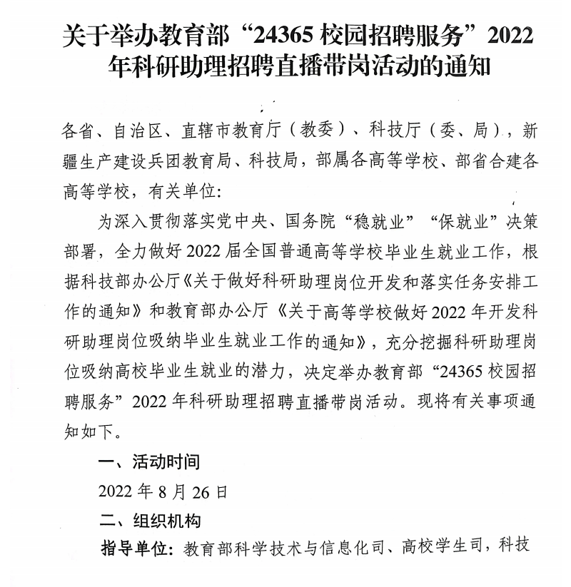 关于举办教育部“24365校园招聘服务”2022年科研助理招聘直播带岗活动的通知