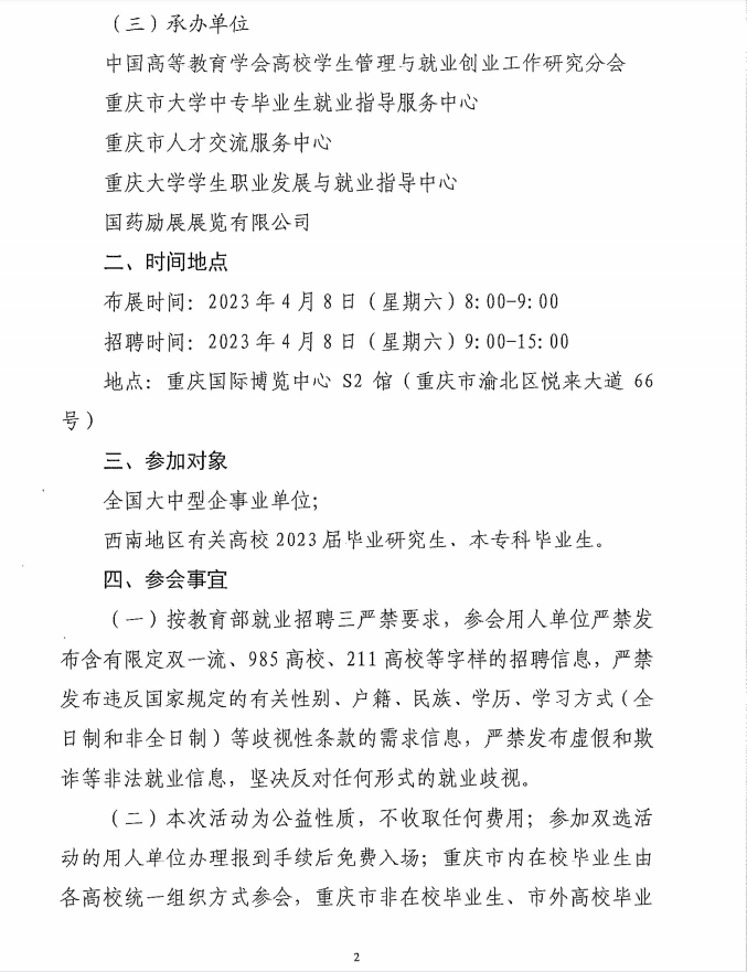 重庆市大学中专毕业生就业指导服务中心 重庆市人才交流服务中心 关于举办重庆市2023届普通高校毕业生 春季网络双选会的通知