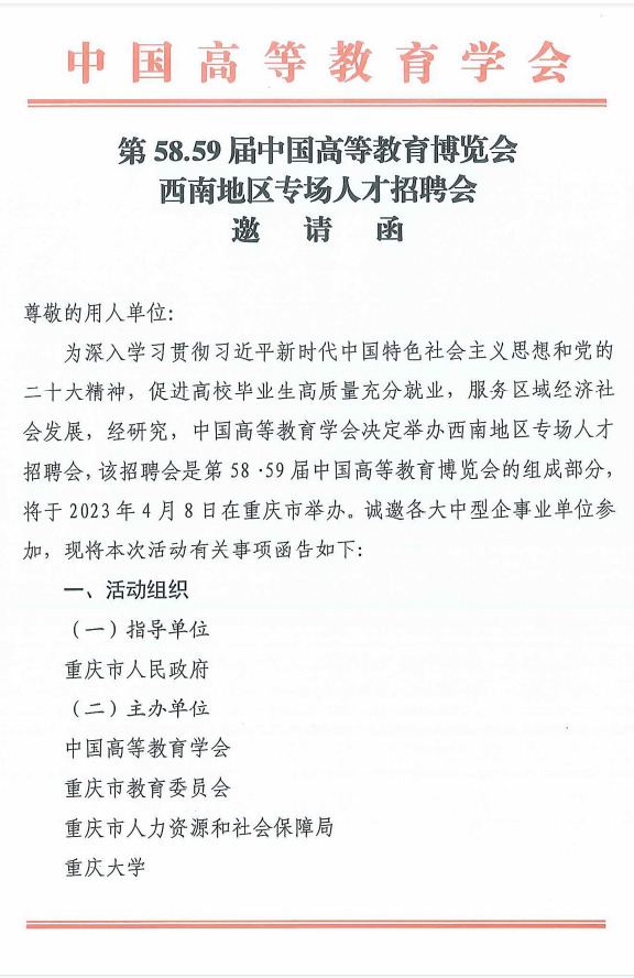 第58.59届中国高等教育博览会西南地区专场人才招聘会邀请函
