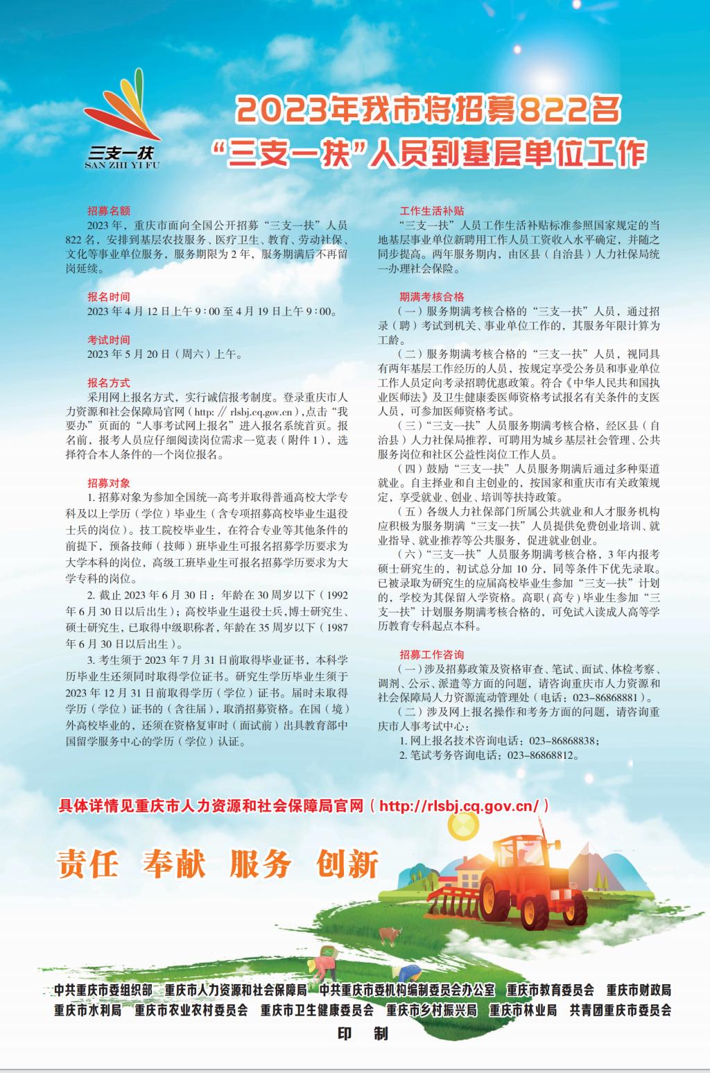 2023年我市将招募822名“三支一扶”人员到基层单位工作