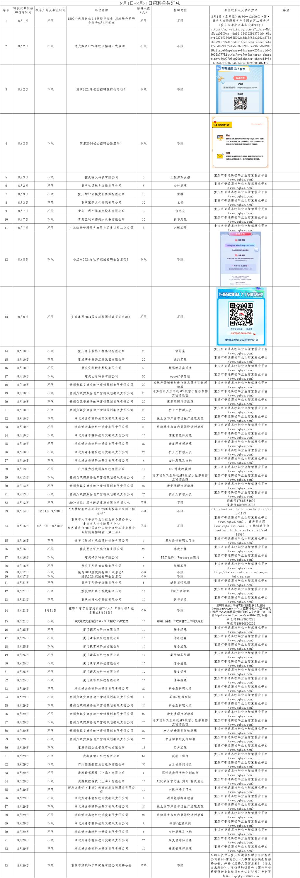上一篇:重庆市大学中专毕业生就业指导服务中心 重庆市人才交流服务中心 关于举办重庆市2024届普通高校毕业生 秋季网络双选会(综合场)的通知