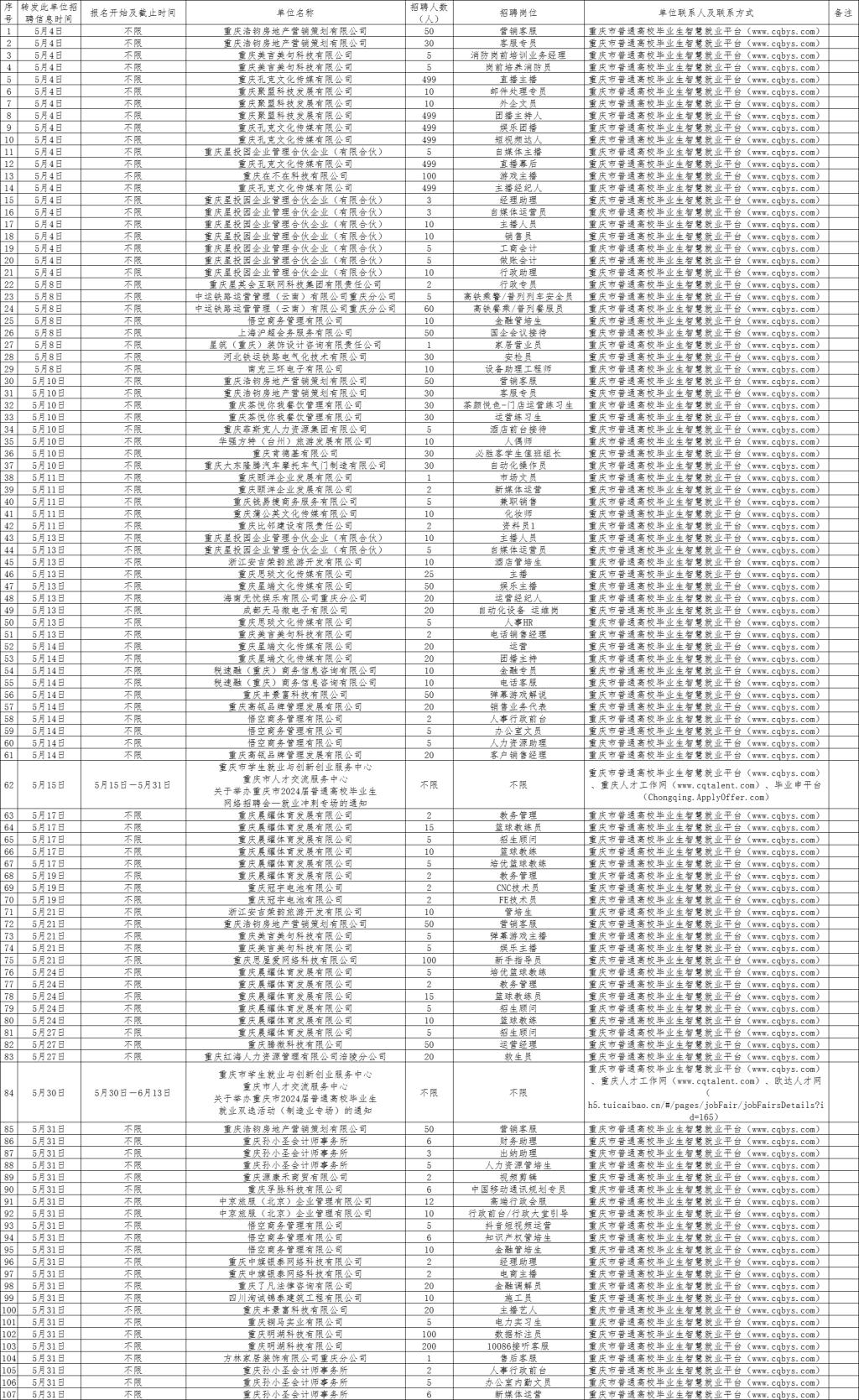 5月1日-5月31日招聘单位汇总