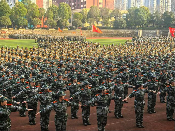 当凛冽的寒风奏响冬日的序曲,校园里的军训却热情如火,丝毫未被低温冷却。那一个个在霜寒中傲然挺立的方阵,宛如寒梅绽放,成为校园中最坚毅、最夺目的景致。