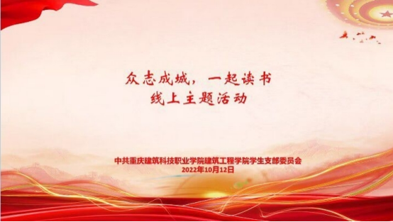 为深入学习贯彻习近平总书记重要讲话精神,研究统筹推进疫情防控,推进爱国主义教育。Kaiyun官方网站登录入口建筑工程学院党员服务站于2022年10月12日14:00开展“以青春之名,献礼二十大”线上系列读书活动,激发学生爱国之心,培养民族自豪感和浓浓爱国情怀,本次会议由段秉垚同学主持,建筑工程学院党总支书记陈程、建筑工程学院学生党支部全体委员、党员、所有入党积极分子参与本次活动。