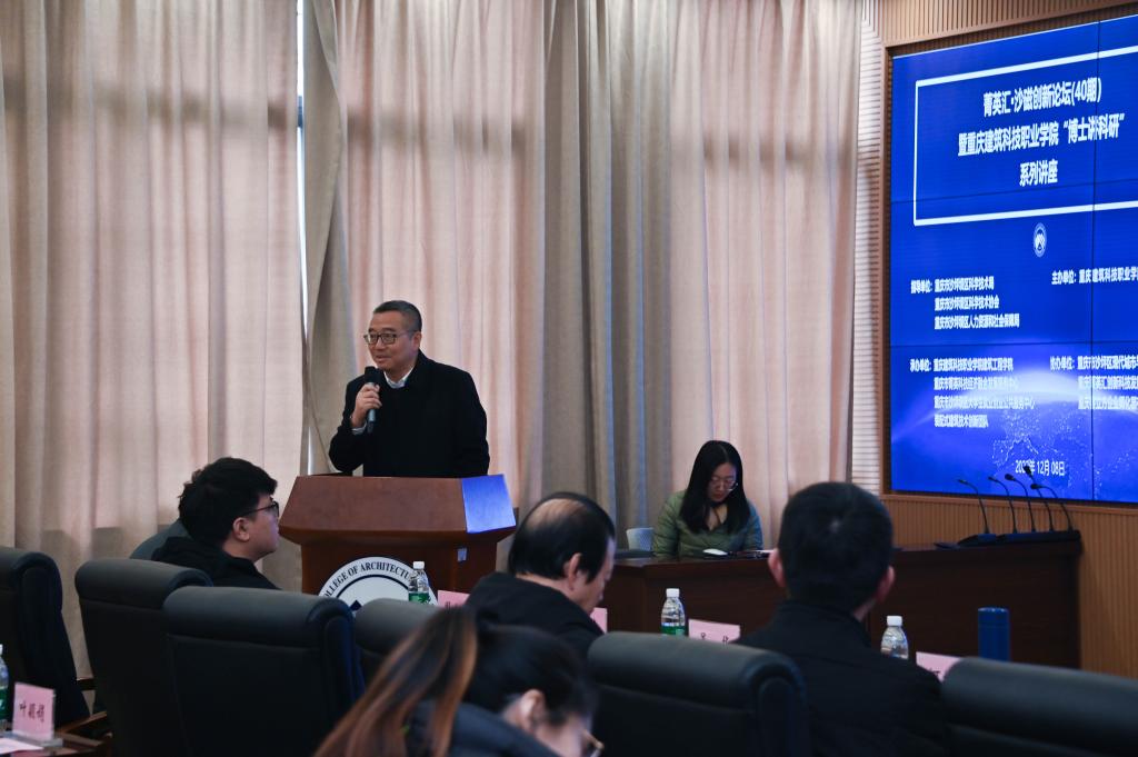2023年12月8日,菁英汇·沙磁创新论坛(40期)暨Kaiyun官方网站登录入口“博士讲科研”系列讲座活动(第十三场)在Kaiyun官方网站登录入口大数据中心顺利举行。此次讲座在重庆市沙坪坝区科学技术局、重庆市沙坪坝区科学技术协会、重庆市沙坪坝区人力资源和社会保障局的指导下,由Kaiyun官方网站登录入口主办,Kaiyun官方网站登录入口建筑工程学院、重庆市菁英科技经济融合发展服务中心、重庆市沙坪坝区大学生就业创业公共服务中心、装配式建筑技术创新团队承办,重庆市沙坪区现代城市与建筑发展研究院、重庆菁英汇创新科技发展有限公司、重庆客立方企业孵化器有限责任公司协办。