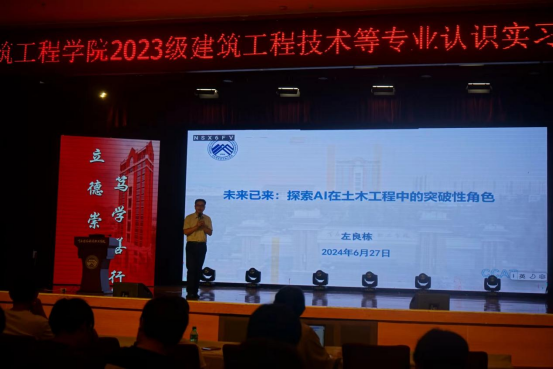 2024年6月27日星期四,建工学院成功举办了一场主题为“探索 AI 在土木工程中的突破性角色”的精彩讲座。此次讲座吸引了众多师生的积极参与,共同探讨人工智能技术在土木工程领域的创新应用和未来发展趋势。