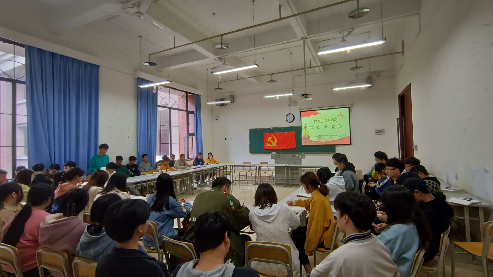 2021年4月7日,在笃学楼1309教室开展了一次群众座谈会议,此次参会人员有建筑工程学院学生去部全体党员、25名拟发展对象以及50余名群众,由学生党支部书记张丹老师主持。