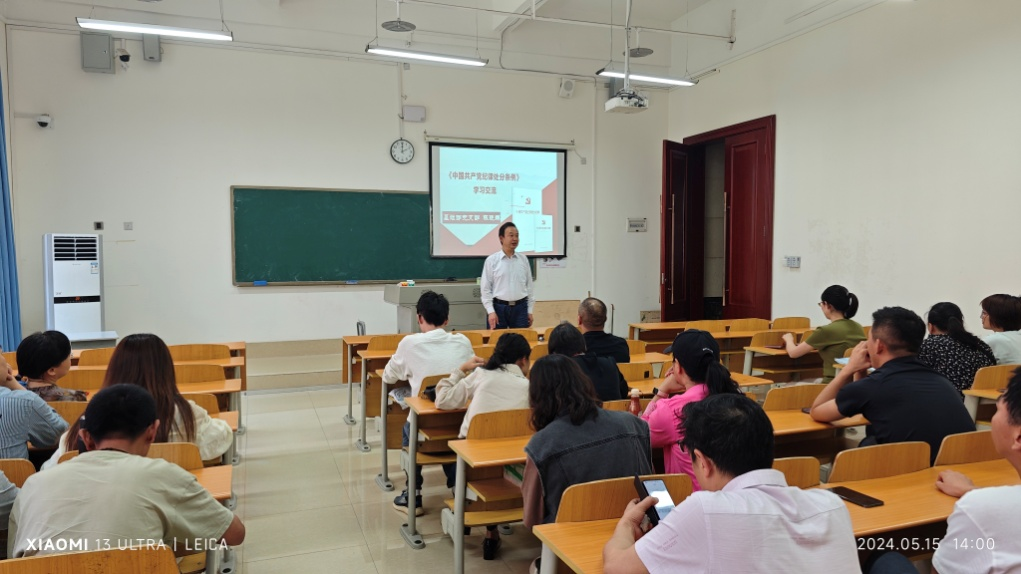 许亚非书记强调了联系实际逐章逐条学习《条例》的重要性和严肃性,要求支部全体党员要在学习过程中紧扣党的政治纪律、组织纪律、廉洁纪律、群众纪律、工作纪律、生活纪律有关章节,围绕新增及修改的重点条文原原本本学、逐章逐条学,推动纪律教育入脑入心,党纪学习教育走深走实。
