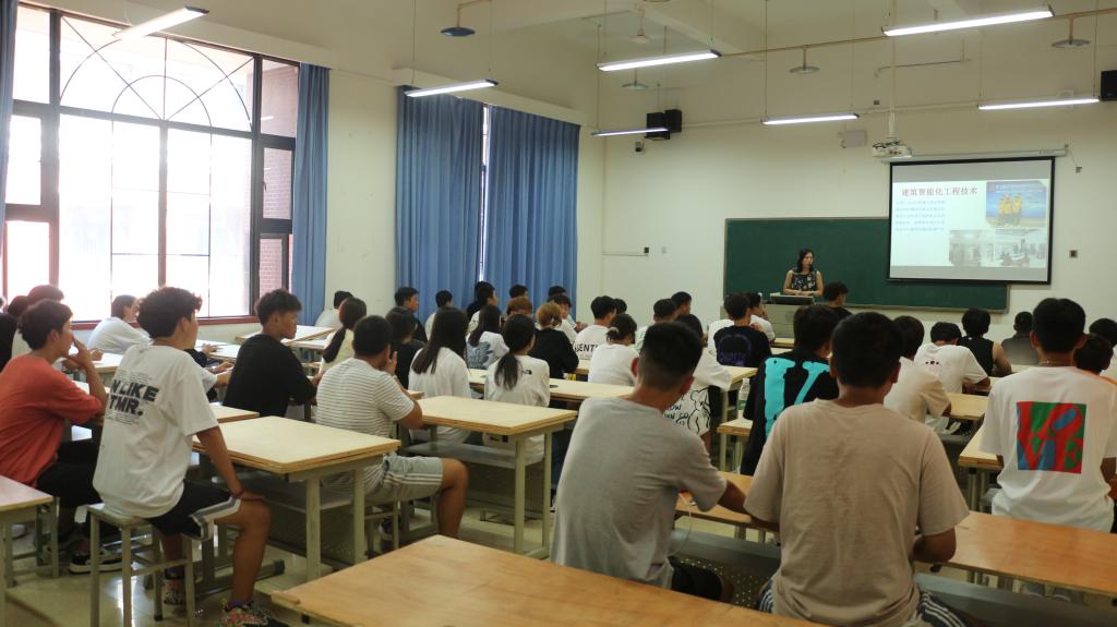 建筑智能化工程技术专业油飞老师通过现代绿色节能建筑、智慧小区和智慧城市的发展,引出建筑智能化产业发展面临千载难逢的机遇。通过讲述建筑智能化工程技术专业的人才培养目标、主干课程、职业技能竞赛和就业方向几个方面内容,使新生们对本专业满怀憧憬和期待。互动提问环节,叶巍老师和罗舒老师对学生的问题进行了详细的解答。