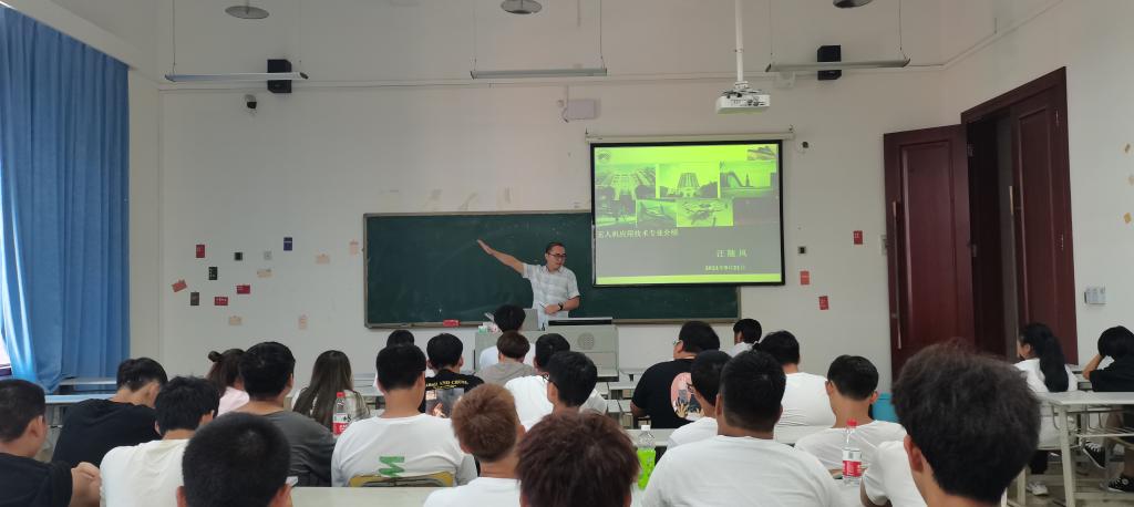 21无人机应用技术专业介绍汪随风老师讲解,介绍了本专业属于航空产业发展的新兴专业,汪老师从专业培养目标、专业课程及就业情况等方面进行详细讲解,最后与同学们讨论三年大学会取得的收获,给新生们留下寄语:踏上新的征程,遨游大学殿堂,汲取丰富知识,开创辉煌人生,榜样为翼,筑梦飞翔!