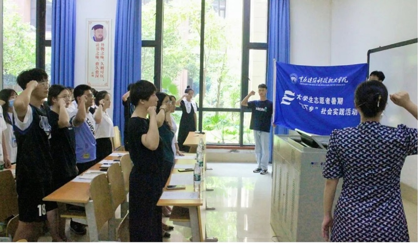 出征仪式上,徐江同学代表志愿者发言。他表示,“三下乡”社会实践活动是一个将自身所学专业与服务社会相结合的平台,引导着我们深入基层,为乡村振兴贡献青春力量。全体志愿者将秉持着立德、崇志、笃学、善行的校训,去看、去思、去行,在实践中成长,在奉献中成才,将奋斗打造成青春的底色!