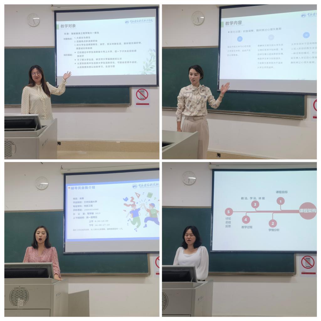 辅导员“说教育”之新生适应篇“精彩主题班会”主张通过“现场说课”形式,以新生适应为切入点,消除陌生环境、陌生人际关系,引导学生较快适应大学生活和学习方式。此次大赛初赛中,紧扣为了让大一新生更好步入大学生活,融入集体、形成强烈的集体荣誉感作为教师应该如何正确引导,各位辅导员都以PPT及讲述的方式分别从不同的方面讲述了自己的见解和如何做到让大一新生快速习惯大学阶段。