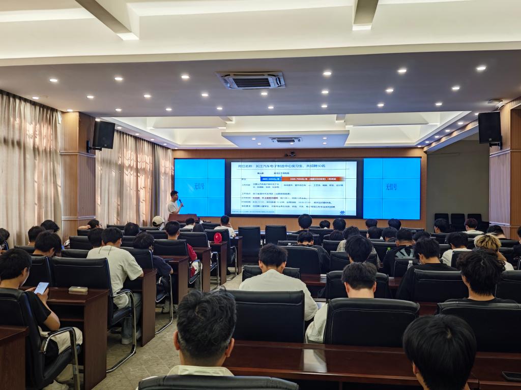 2025年5月21日15:30,浙江长江汽车电子有限公司26届校招宣讲会在大数据中心举行,我院新能源专业三个班级100余名学生全部参会。
