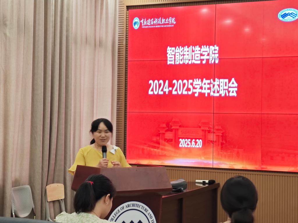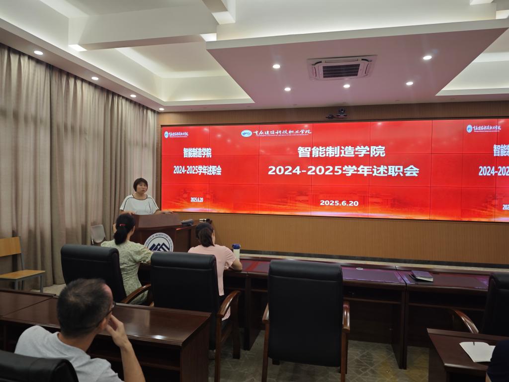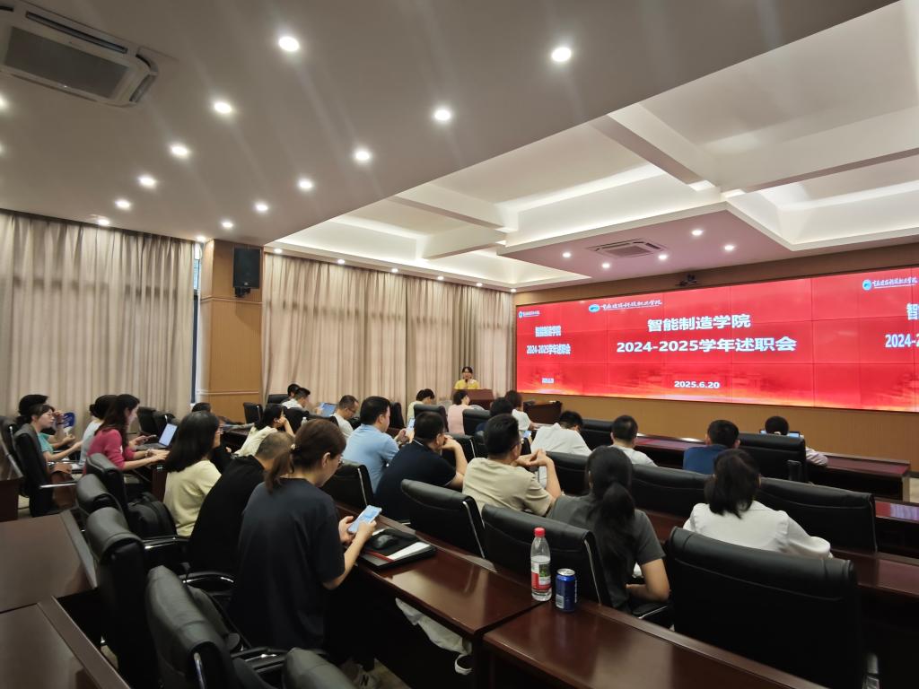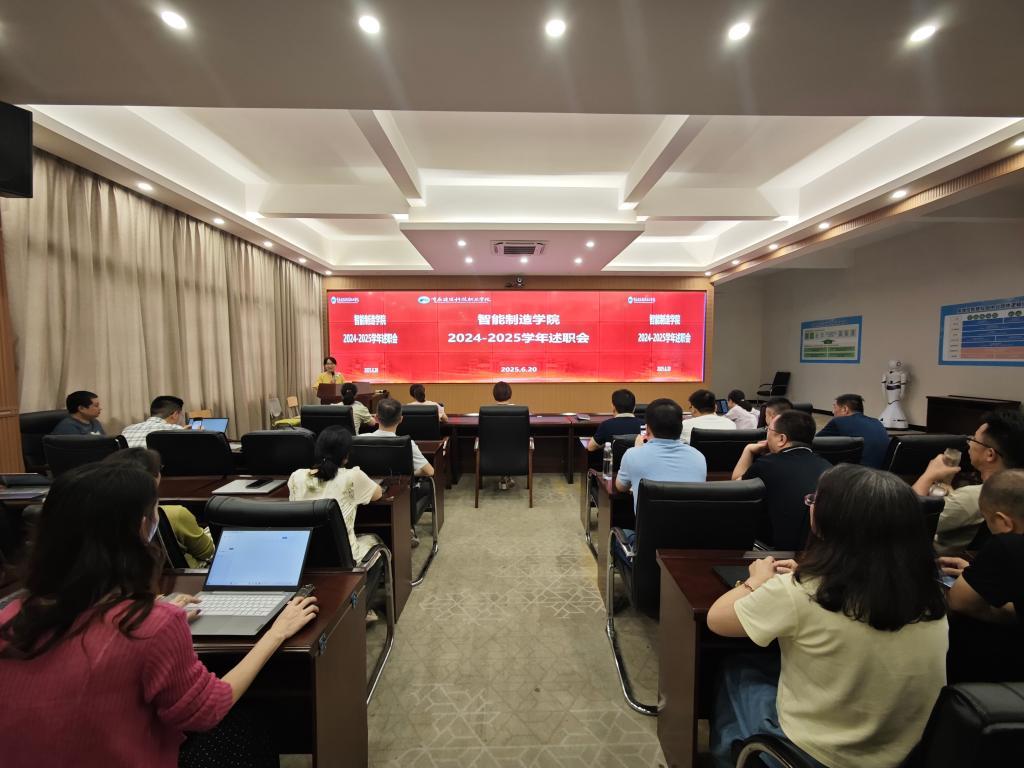2025年6月20日14:00,智能制造学院2024-2025学年教师述职会在立德楼大数据中心召开。院长陈亚娟、院党总支书记齐云霞出席会议并讲话,全体教职工围绕教学科研、产教融合学工队伍建设等工作开展述职。
