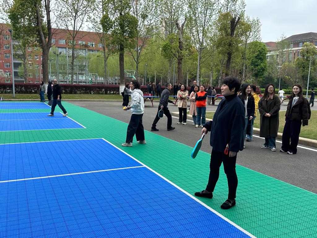 活动伊始,学院相关负责人向到场教师简要介绍了匹克球运动的起源、基本规则和安全注意事项,强调本次活动以“趣味健身、以球会友”为核心,旨在让大家放下工作的忙碌,感受新兴体育运动的魅力,同时增进同事间的交流与协作。匹克球作为一项兼具趣味性、休闲性与运动性的运动,门槛较低、易于上手,十分适合团队参与,很快便勾起了老师们的参与热情。