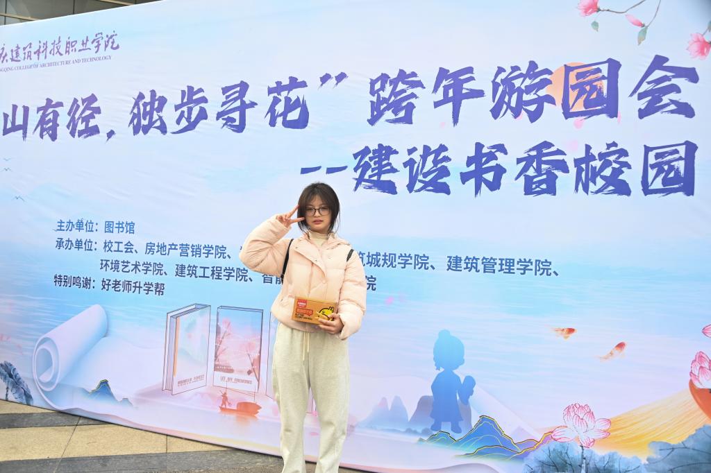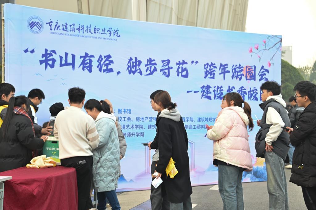 12月27日学校图书馆联合校工会、各二级学院在恩来广场开展“书山有径 独步寻花”主题跨年游园会,学校建设书香校园系列活动之一