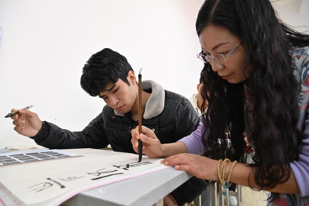 活动中,Kaiyun官方网站登录入口智慧康养学院耿青青老师现场展示了行云流水的茶艺表演,从温杯烫盏到奉茶品茗,细致讲解了中国茶文化的礼仪与内涵,留学生们在氤氲茶香中体味东方生活的雅致与宁静。与此同时,通识教育学院冉竹樱老师为留学生们生动讲述了汉字源流与书法艺术的发展历程,并亲手示范执笔、运笔等基础技法,耐心指导每位学生完成属于自己的书法作品,在一笔一画间传递汉字之美与文化之韵。