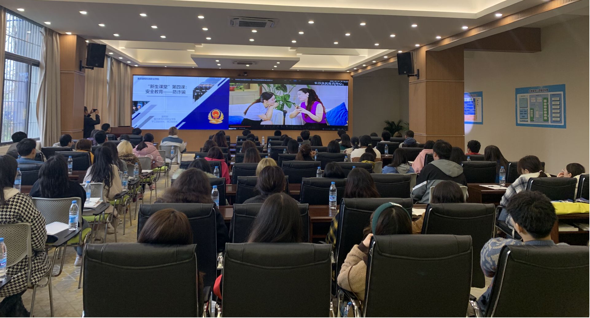 谭处长将课堂内容分为三个部分:“电信诈骗的犯罪特点”、“电信诈骗的作案手法”、“电信诈骗的防范对策”,结合并引用了我们身边大量真实的大学生案例,给同学们起到了警示作用。最后还播放了四个由真实案例改编的视频,提醒广大同学们不要在网上刷单、不要进行网贷、不要在网上博彩、更不要通过网上交友就轻易相信对方。