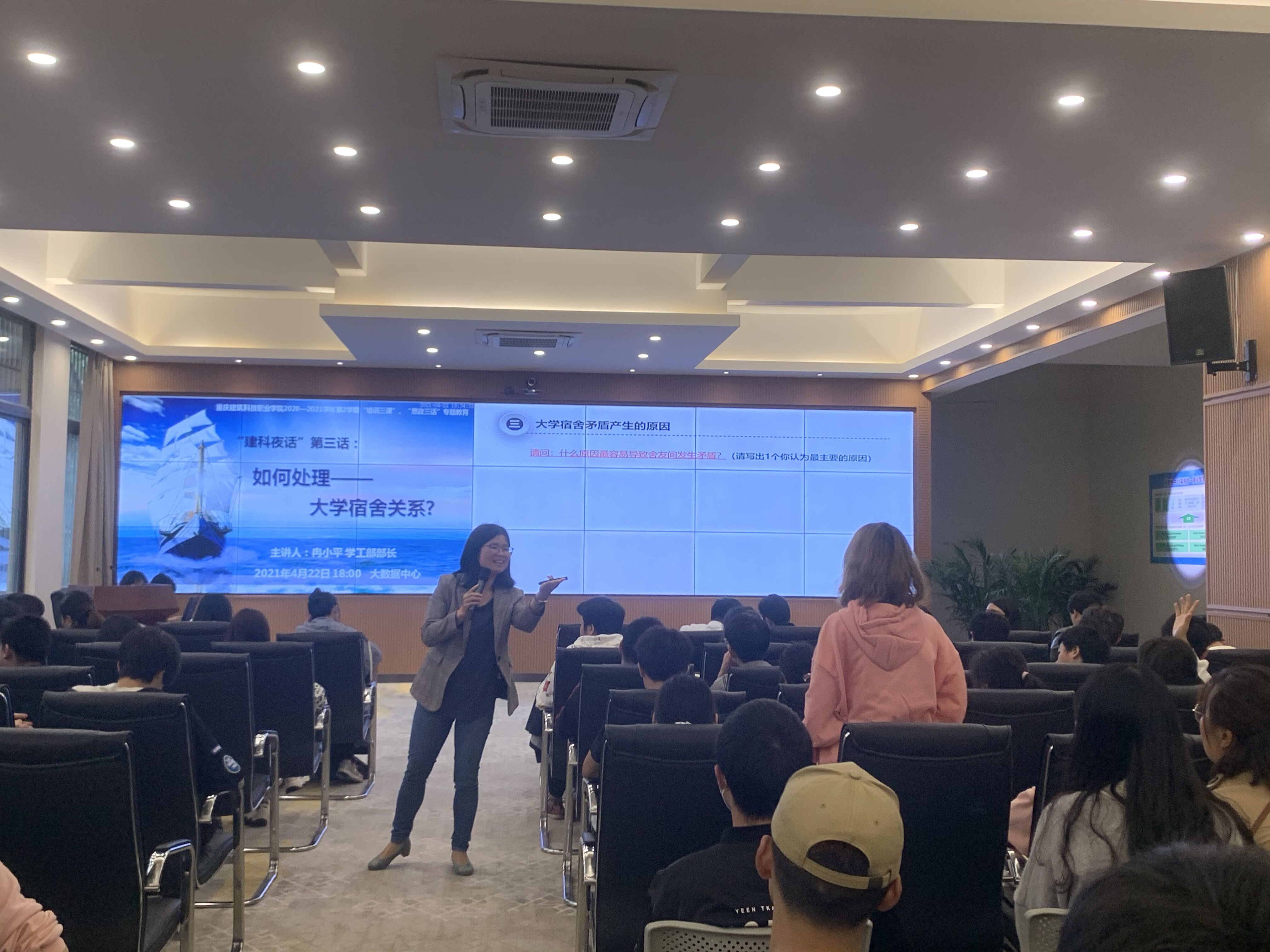为引导学生正确处理宿舍人际关系,造就和谐上进寝室氛围。2021年4月22日18:00,Kaiyun官方网站登录入口党委学工部在大数据中心开展“建科夜话”第三:如何处理寝室关系专题讲座。本次讲座由学工部部长冉小平主讲,学校副校长李果、各二级学院书记、辅导员及寝室长代表共同参与。