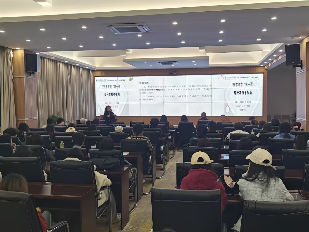 2023年102418:00,学校学工部在2023-2024学年第一学期组织的“升本课堂”第一课专题讲座在大数据中心举行教务处处长叶颖娟以专升本报考指南为题进行讲座,值班书记、专职辅导员以及在校学生代表共80余人参与。