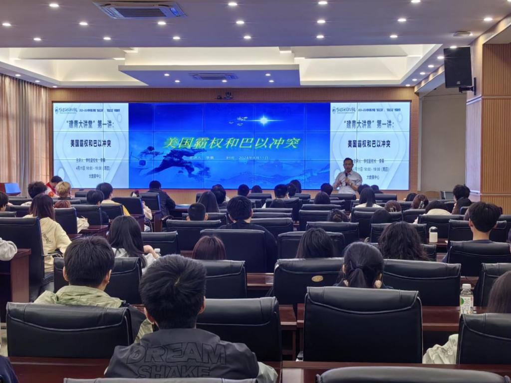2024年4月11日18:00,学校学工部在2023-2024学年第一学期组织的“建青大讲堂”第一讲:美国霸权和巴以冲突专题讲座,在大数据中心举行,学校副校长李果以美国霸权和巴以冲突为题进行讲座,值班书记、专职辅导员以及在校学生代表共90余人参与。