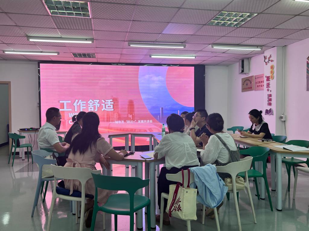接着,主持人老师提出:“怎样工作才能让我们舒适?”有老师提出要做自己喜欢的工作、自己擅长的工作、被认可的工作、舒适的工作环境和同事。还有老师提出让自己舒适主要是自己得放平心态。随后主持人让大家分析:“我的工作现状是在哪个层级?”在老师们讨论后,主持人老师提出让大家对照三叶草模型,分别从兴趣、价值、能力来分析,看看自己的情绪处于什么状态。