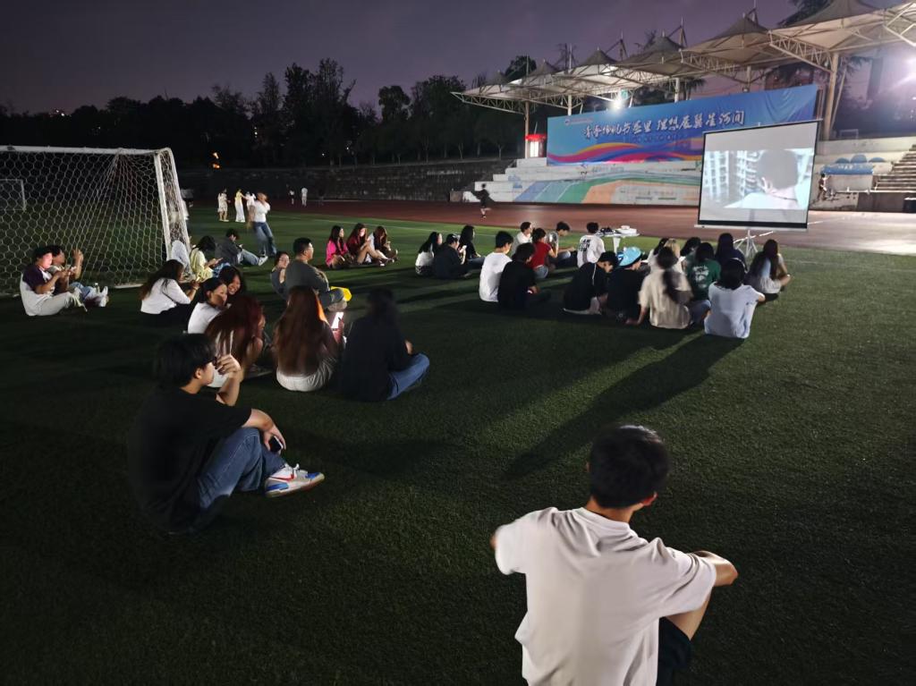 为丰富学生社区文化生活,传递青春正能量,“一站式”学生社区特设党支部于6月10号晚在足球场开展露天观影活动,放映温情励志影片《小小的我》,众多同学围坐草坪,在皎洁月光下共享光影盛宴。