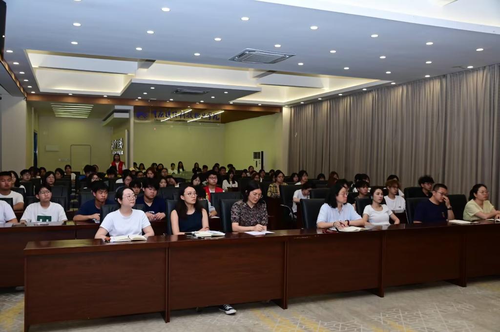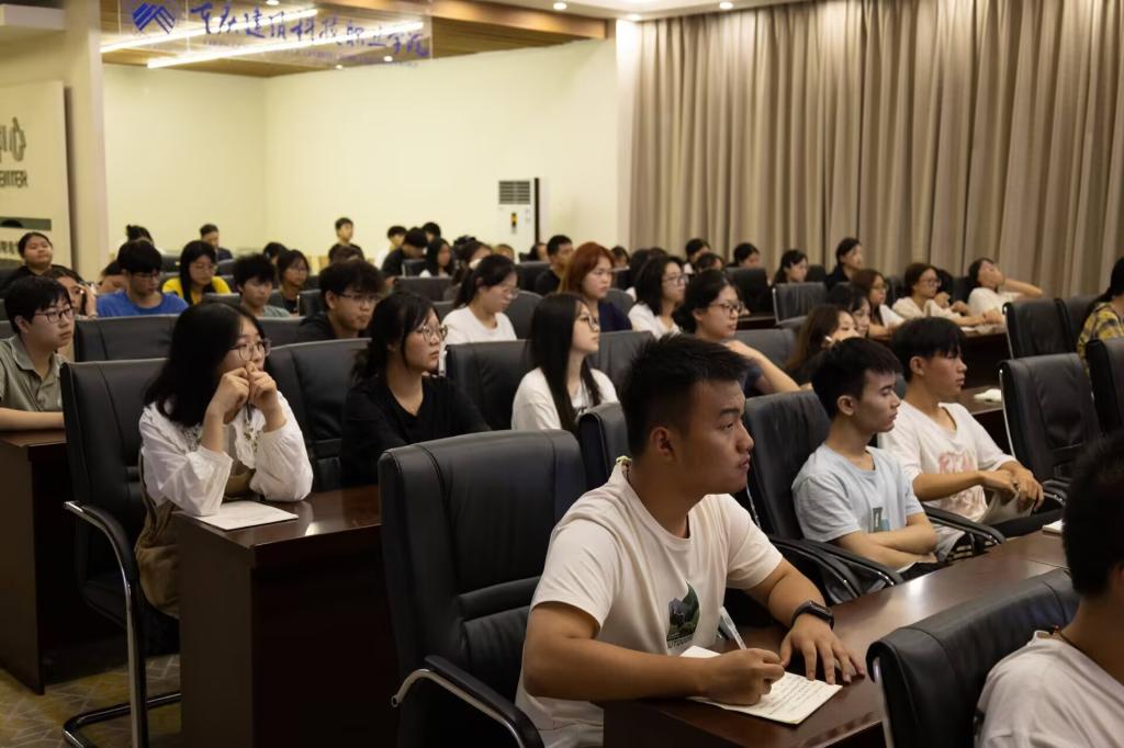 2025年9月18日下午,学校学工部在大数据中心组织开展2025-2026学年第一学期思政专题讲座,讲座主题是尊严与荣耀:九三阅兵中的精神传承与民族意志。讲座由马克思主义学院梁伟业老师主讲,学工部部长冉小平、智慧康养学院党支部书记殷源、值班辅导员以及在校学生代表90余人参与。