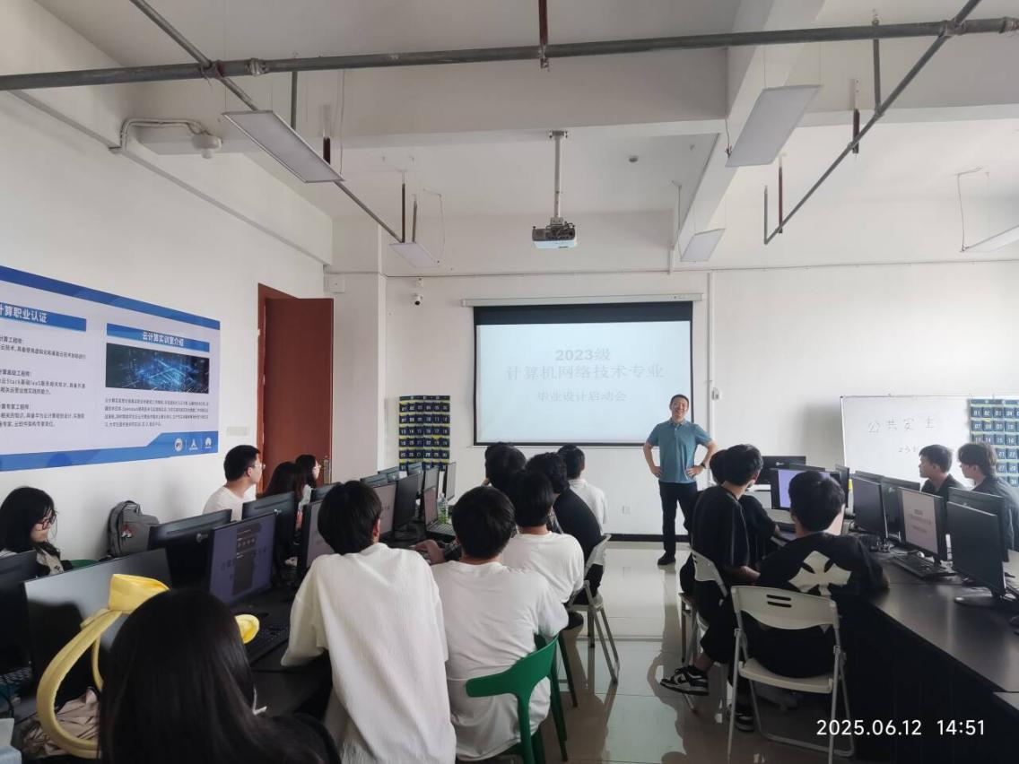 为提升计算机网络技术专业学生的综合实践能力和创新思维,进一步夯实专业技能,于2025年6月12日正式启动了计算机网络技术专业毕业设计工作,网络工程教研室全体老师,23级计算机网络技术专业全体学生参加了此次大会。