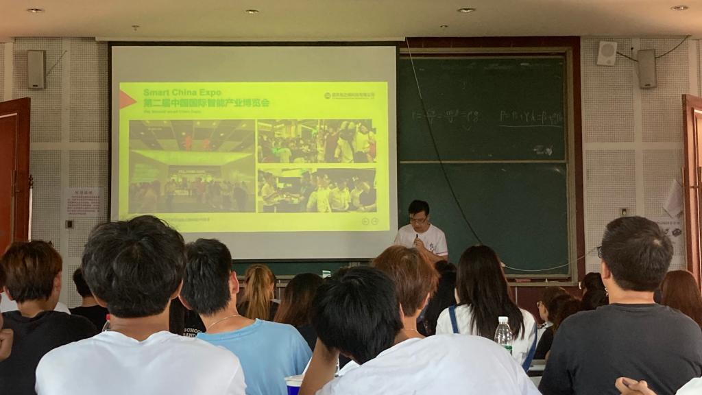 会议开始,教研室主任施惠老师为同学们介绍到场的各科任老师。接下来由叶杨老师为大家做新生专业介绍,介绍虚拟现实技术的发展,通过虚拟现实技术的发展历程、专业特色、未来前景等为同学们进行详细讲解。让同学们对自己所学的专业具有大体的了解。叶老师在会议上也给大家分享了许多关于在大学生涯中的学习心得以及升本、考研的经验。最后由来自重庆龙之瑞科技有限公司的郭鹏飞老师进行虚拟现实应用技术专业方面的宣讲以及公司的介绍、VR行业分析、技术流程展示与校企合作等内容。最后由同学们提问有关专业方面的疑惑,郭鹏飞老师为同学们作出解答。