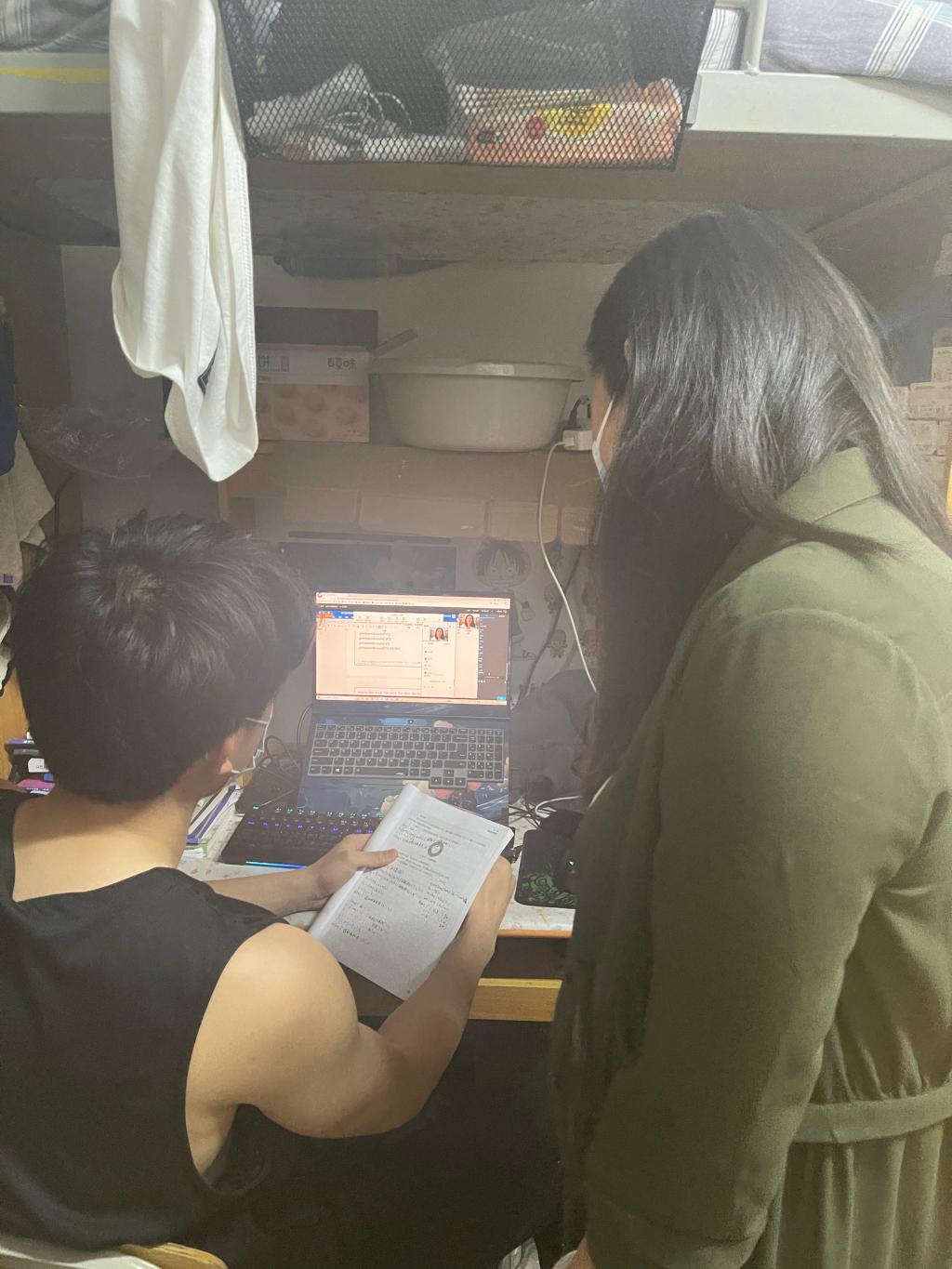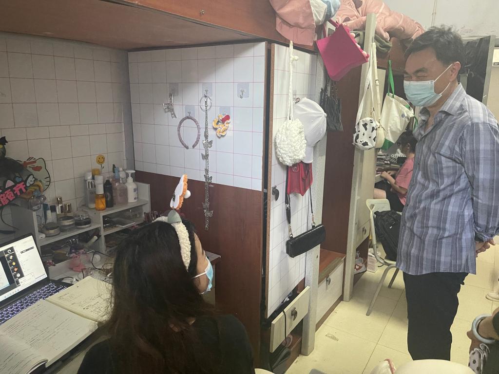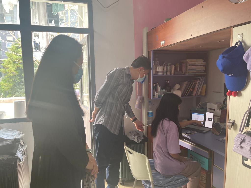 进入寝室后,唐国坪院长作为领导老师代表向我院学生询问宿舍生活和上课情况,并就同学们提出的设备和疫情防控问题给予了一定建议与指导。孙二华副院长与同学们一起上网课,了解老师们线上课程是否准备充分,并表扬我院E221宿舍的同学上课认真听讲做笔记,是一个非常好的习惯。同时叮嘱同学们一定要注意宿舍用水、用电安全,保持寝室的洁净和卫生非必要不出寝室。走访过程中,张运来书记同学们良好的学习氛围表示肯定和赞扬
