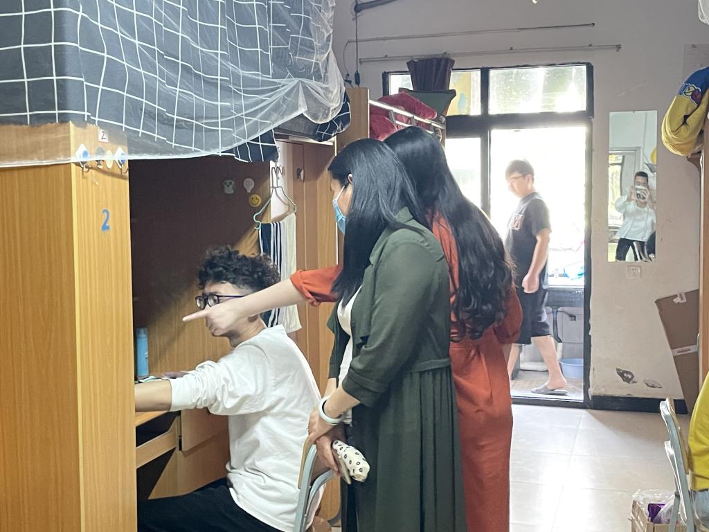 为着力抓好疫情防控、教育教学工作,深入了解我院学生在疫情期间的学习、生活和心理状况,3月15日14:30,学院院长唐国坪、副院长孙二华、书记张运来和辅导员陈琰、董媛等老师走访了学生宿舍。