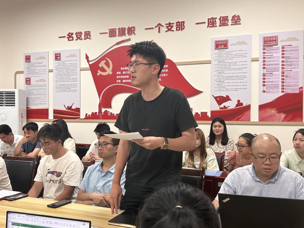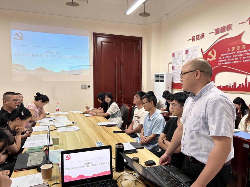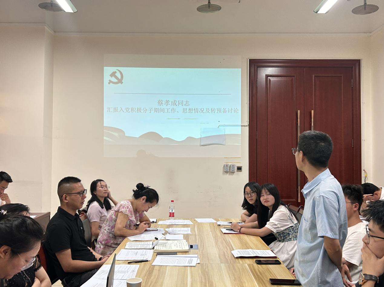 会议伊始,陈俊名、钟涛、蔡孝成3名同志依次向党支部汇报自入党积极分子以来在思想、工作、生活等情况由入党介绍人介绍了三名同志在发展期间的主要情况并表明愿意介绍三位同志加入中共共产党与会同志纷纷提出同意按期转正的意见。