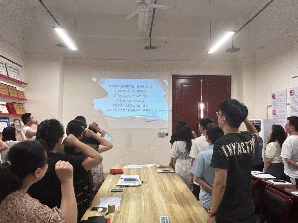 会议最后,全体成员向党徽宣读入党誓词。