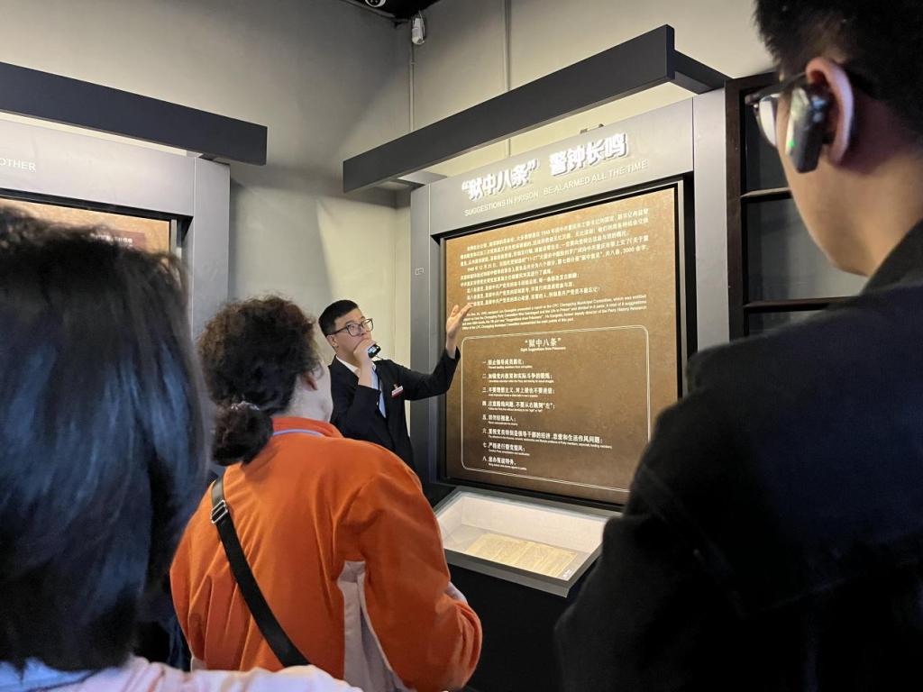 现场聆听讲解员讲述罗广斌和狱友们在狱中制作的特殊的五星红旗,认真聆听“狱中八条”诞生经过,参观当年国民党反动派关押与审问江竹筠、龙光章、许建业、何雪松等革命烈士的牢房与审讯室,了解革命烈士的光荣事迹,现场感受革命英烈们坚定信念的爱国主义精神、百折不挠的斗争精神和英勇无畏的牺牲精神,深切缅怀革命先辈的丰功伟绩。