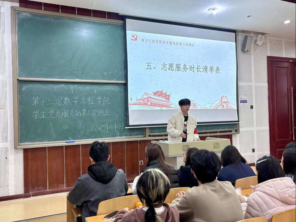 为进一步规范党员服务站工作流程,强化成员责任意识,2025年11月27日,第十三届数字工程学院党员服务站第三次例会顺利召开。会议围绕志愿服务推进、思想建设深化、管理制度完善等核心议题展开,为后续工作明确方向、夯实基础。