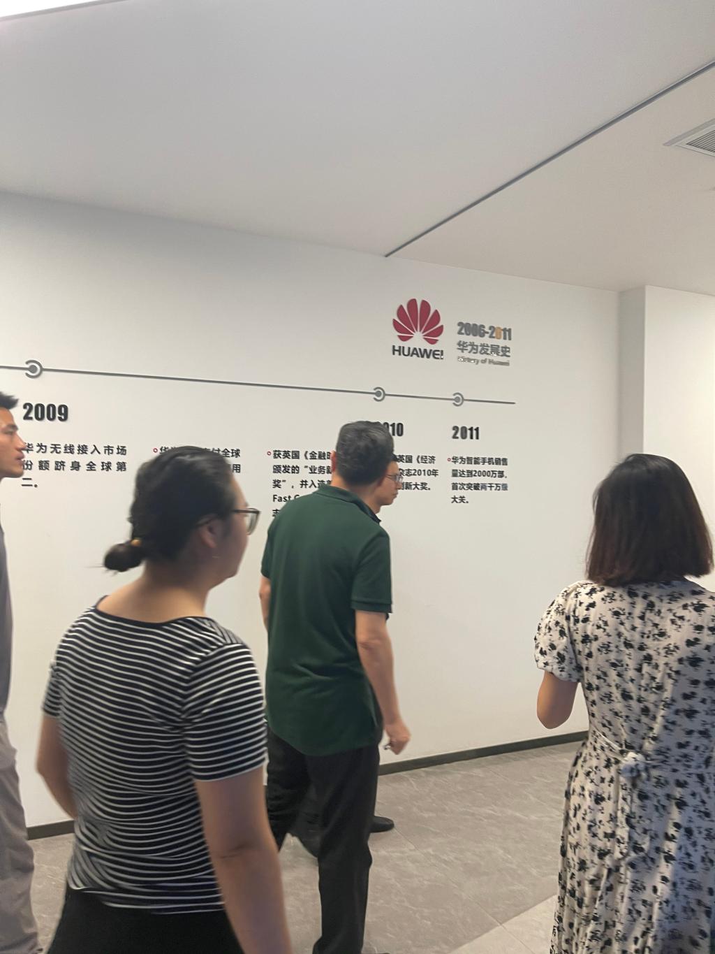 同镀华为ICT学院实训中心总经理安家丞对我院领导一行的到来表示热烈欢迎。随后,安经理详细地介绍了公司概况、发展历程、主营业务以及发展前景。他表示,随着科技的快速发展,对高素质人才和技术升级的需求日益提高,希望在平台搭建方面开展全方位的合作。