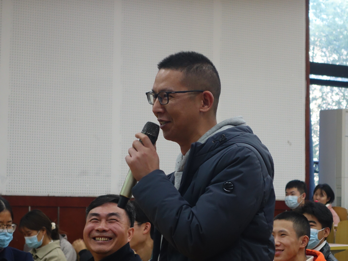 讲座最后,数字工程学院的周春宇同学为大家带来一首自己的原创说唱歌曲《纸飞机》,希望同学们珍惜自己眼前的青春,感悟人生。数字工程学院唐国坪院长进行总结发言。他向同学们分享了他在听音乐方面的一些经历,并鼓励同学们可以在课余时间去重庆大剧院观看一些音乐剧演出等。最后,学工部冉小平部长说道:音乐其实就是我们的生活,他与我们的生活息息相关,希望同学们能够在大学三年的学习生活中多多参与此类的活动,丰富自己的课余生活。