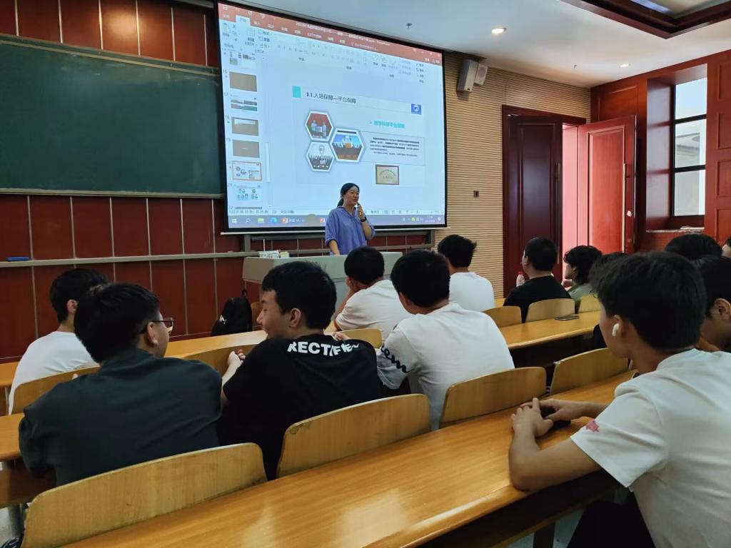 虚拟现实技术教研室主任施惠老师为同学们介绍授课的专业老师们,就人才培养方案为同学们进行介绍。提出三个问题吸引新生们的注意力,并通过问题的解答与新生们深入交流。接着,她概括性地介绍了本专业课程开设的基本情况满足新生们的求知欲和好奇心,让同学们对自己所学的专业有所了解。并指出职业生涯规划的必要性和重要性,引导学生根据自己的实际情况和当今社会的发展要求,认真思考并尽早制订自己面向未来的职业生涯规划。