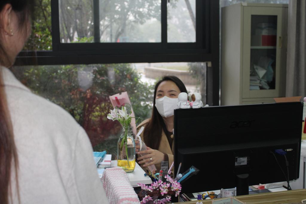 “这一天,她们是被鲜花和幸福包围的一天!”为让数字工程学院默默付出的女老师们享受到女神的幸福和快乐,感受到来自同学们的关心和问候。数字工程学院团总支·学生会于当天上午便早早守候在3513办公室,为每位女神送上鲜花和祝福。愿她们能领略流金岁月里的温柔芬芳,也能成为自己火热世界里的女王。鲜花和笑脸交相辉映,烘托出温馨祥和的节日氛围。一支花朵一份爱,一份祝福一份情。