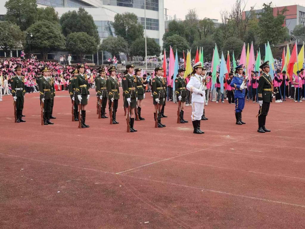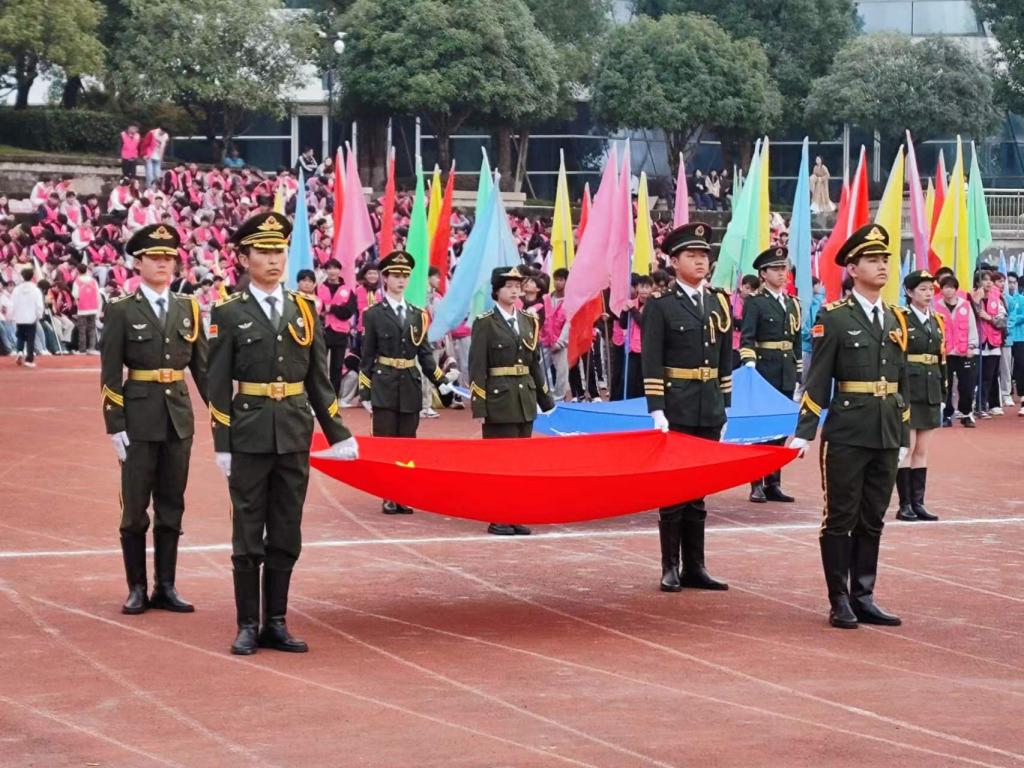 【升旗仪式】运动员方阵入场后,紧接着就是庄,严的升旗仪式。五星红旗在雄壮有力的国歌声中冉冉升起,校旗紧跟其后,迎风飘扬,全校师生见证了升旗仪式的庄严时刻。