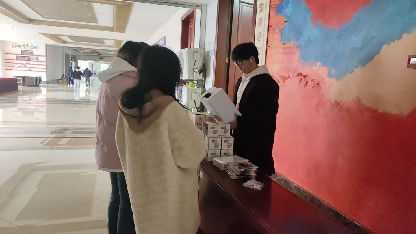 活动现场,星光大道被布置得格外喜庆,五彩斑斓的灯笼下悬挂着精心准备的字谜。同学们穿梭其中,或驻足思考,或与同伴热烈讨论,沉浸在猜字谜的乐趣之中。学校为同学们准备了水杯、笔记本、糖果和一些精美的挂件,成功猜出字谜的同学还能参与抽奖,收获精美的奖品,现场气氛热烈非凡。
