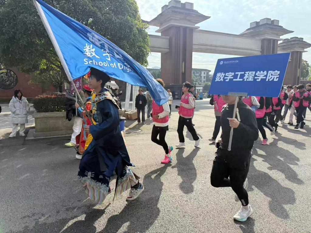 本次校园跑路线围绕香樟大道、笃学楼、星光大道、科技楼等校园地标设计,全程3圈并设置4个补给打卡点、2个医疗点。沿途彩色道旗与指示牌清晰引导,志愿者们在关键路口热情指引,补给点及时提供饮用水,医疗人员与急救车全程待命,为选手们筑牢安全保障。赛场上,选手们步伐轻快、彼此鼓劲,既有全力冲刺的竞技感,也有并肩奔跑的氛围感,青春的活力与笑容成为校园里最亮眼的风景。