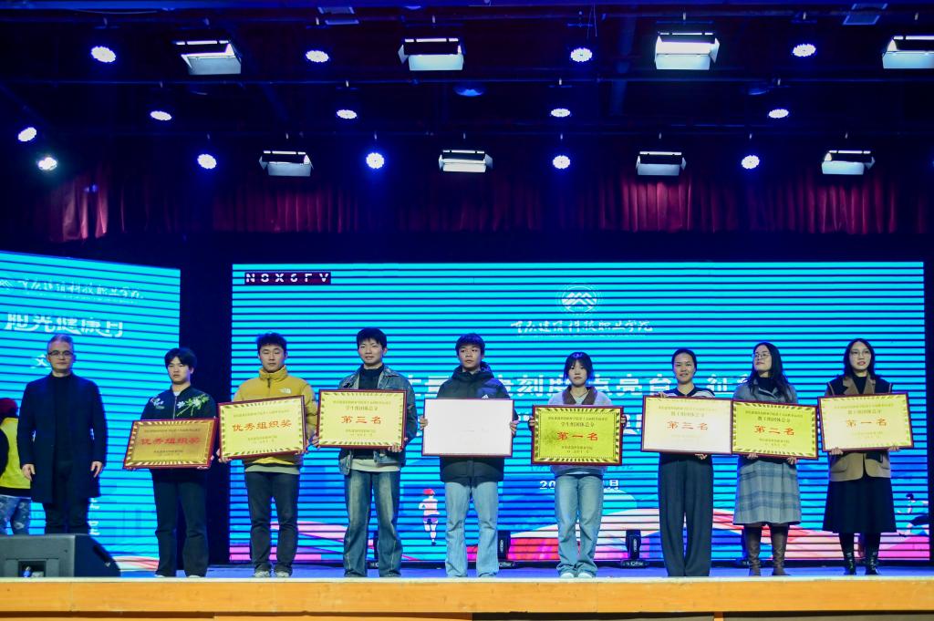 随着最后一支队伍表演结束,活动自然过渡到“阳光健康月”闭幕式环节,现场氛围也从竞技的紧张转为收获的温馨——“阳光健康月”比赛颁奖仪式率先开启。主持人手持获奖名单,依次揭晓了获奖集体与个人,李朝国副校长等嘉宾为获奖者一一颁发证书与奖品,闪烁的奖牌与灿烂的笑容相映成趣,数字工程学院的学子们用行动诠释了重科建院‘知行合一、向阳生长的风貌,将“健康同行”的理念具象为触手可及的喜悦。